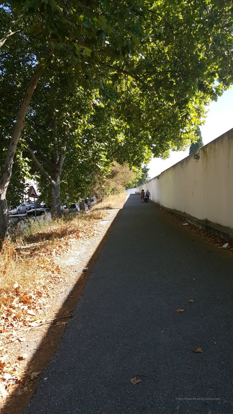 버스에서 내려서 이 길을 쭉 따라 걸어간다
