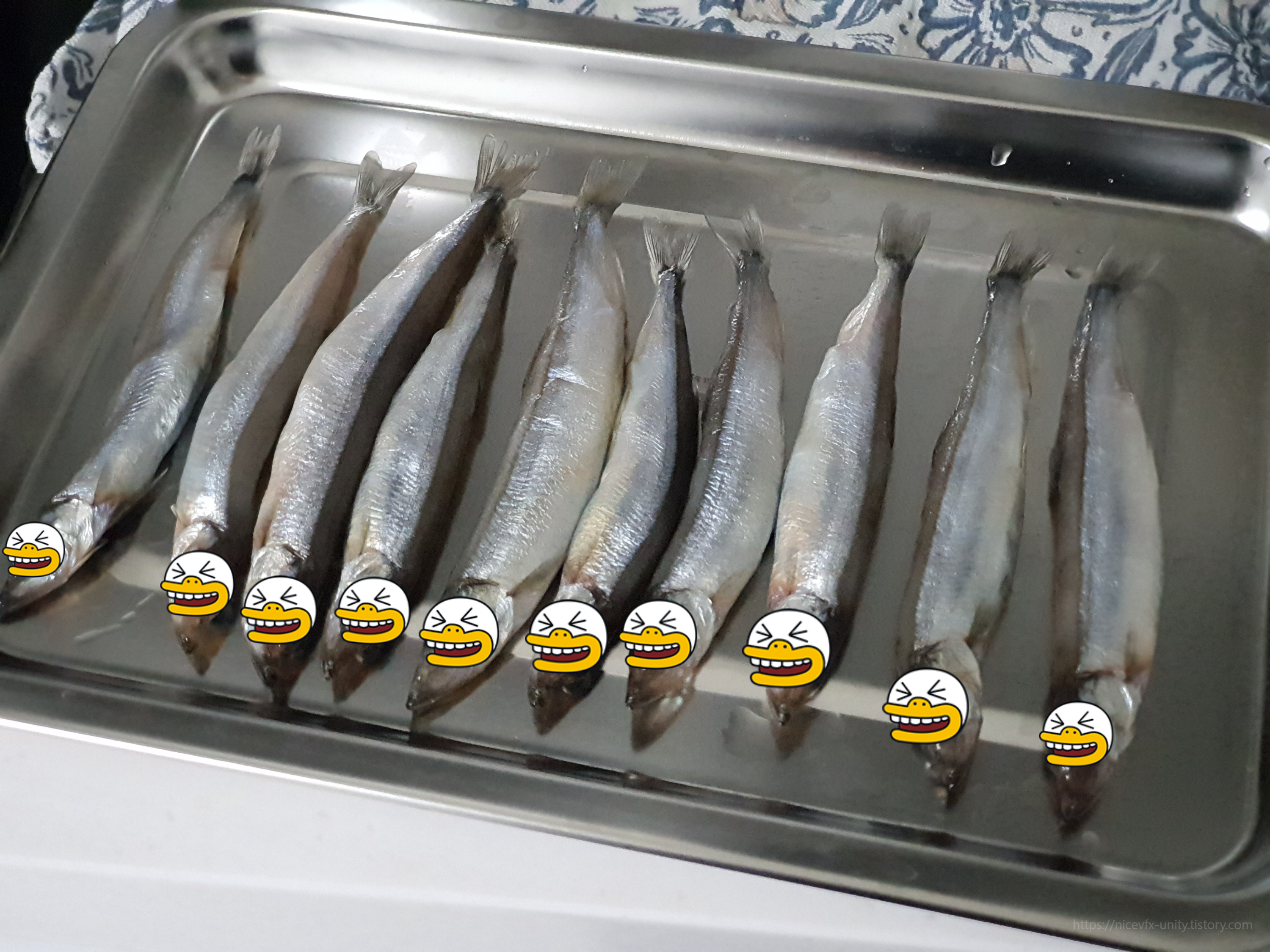 식용유를 바르려고 담아 둔 열빙어들