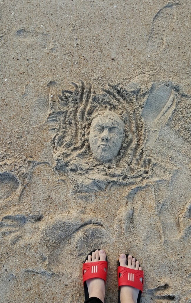 2번 : 모래로 얼굴 만들기