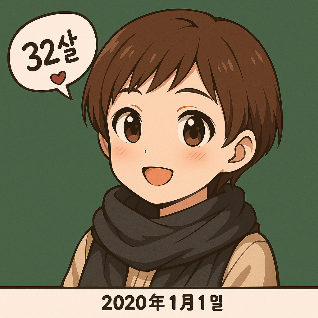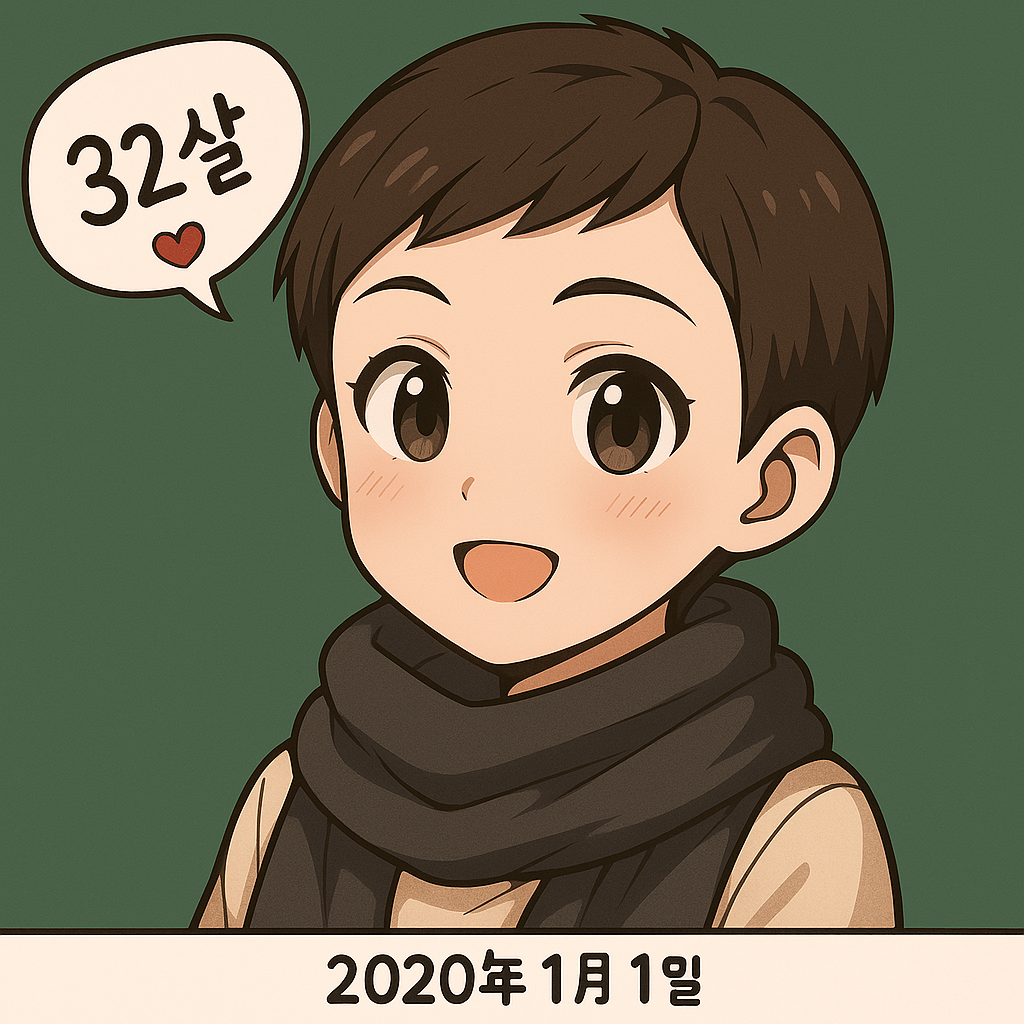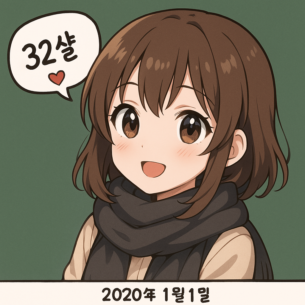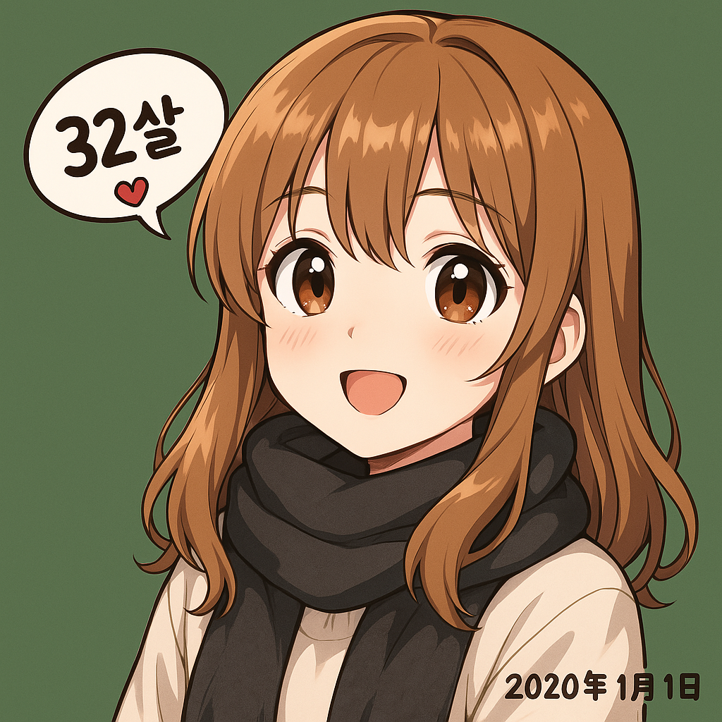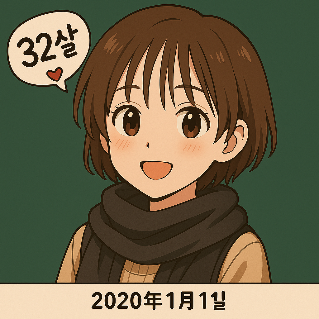 2020년 1월 1일 32살에 그려놓은 내 캐릭터다. 이 때 짧은 머리였나보다.