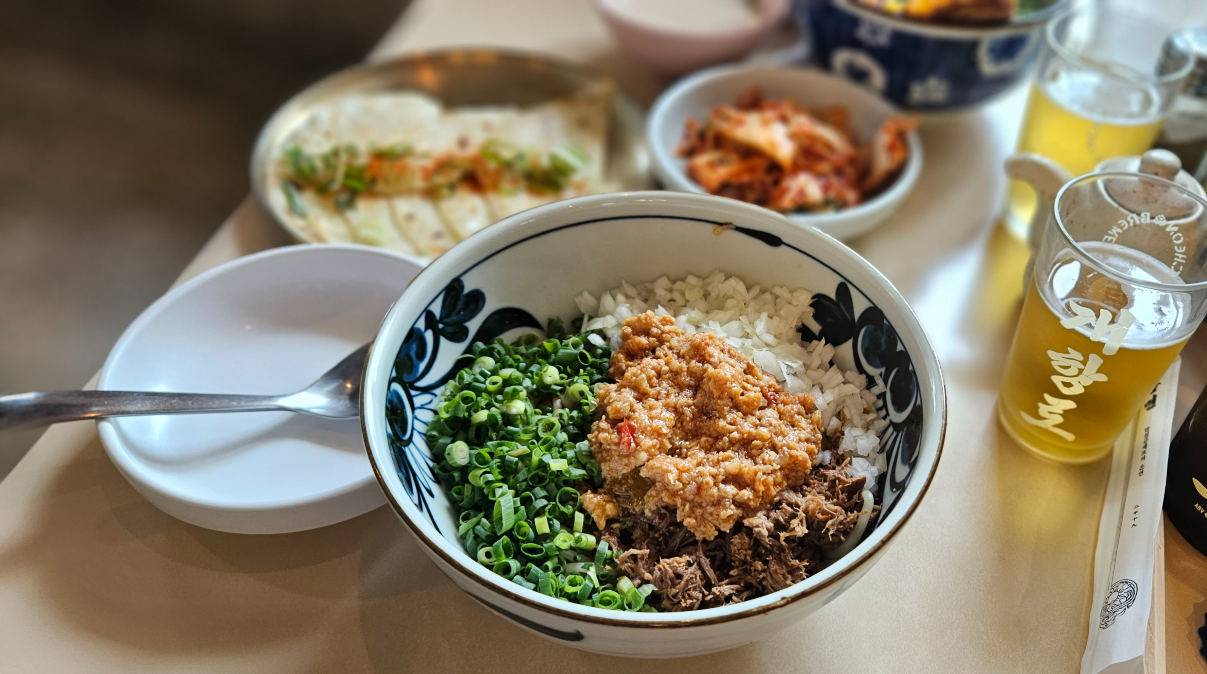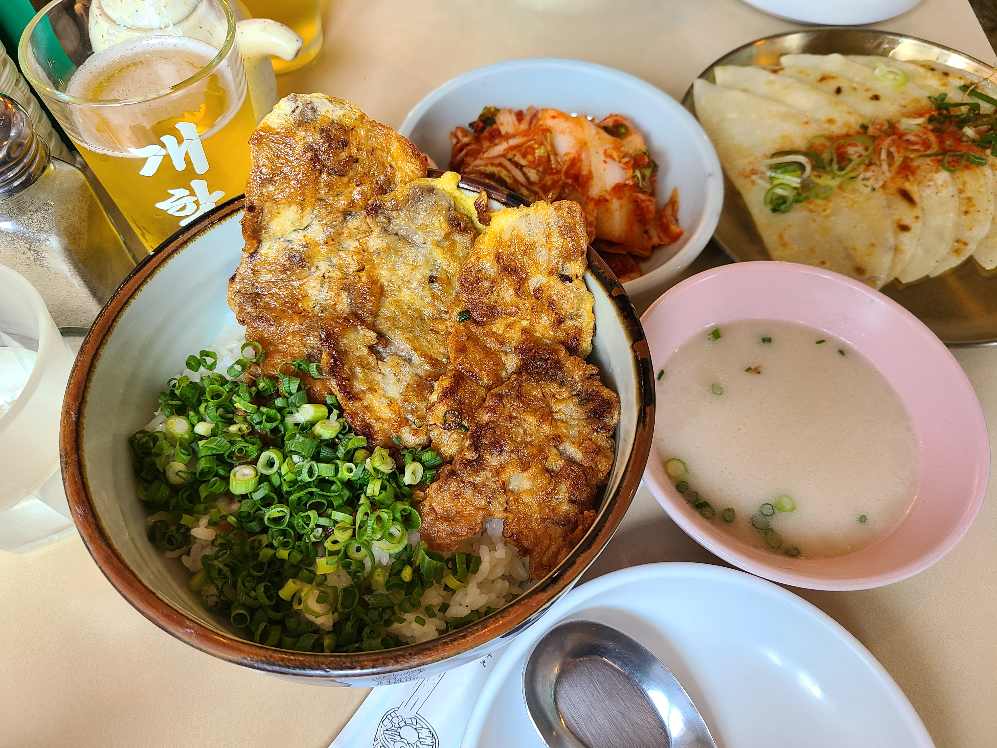 육전덮밥과 비빔면, 납작만두 그리고 개항로 맥주를 주문했습니다.